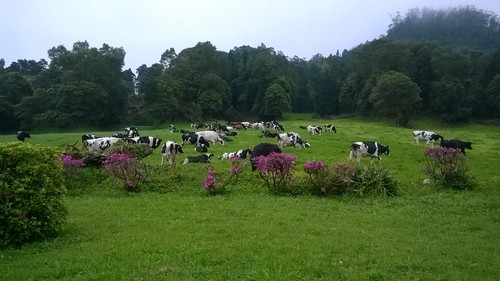 O que eu achei maravilhoso em São Miguel foi a ruralidade da ilha, vi miúdos a pedalar de bicicleta com botas de borracha cheias de lama, indicativas de que em qualquer parte do dia têm de ir ajudar os pais a tratar das vaquinhas. E eles andam por ali, rodeados de natureza, com um ar saudável e feliz que só visto. Por falar em vaquinhas, elas estão um pouco por todo o lado, sem cercas e eu dei por mim a pensar que as vacas nos Açores são mesmo felizes e bonitas.